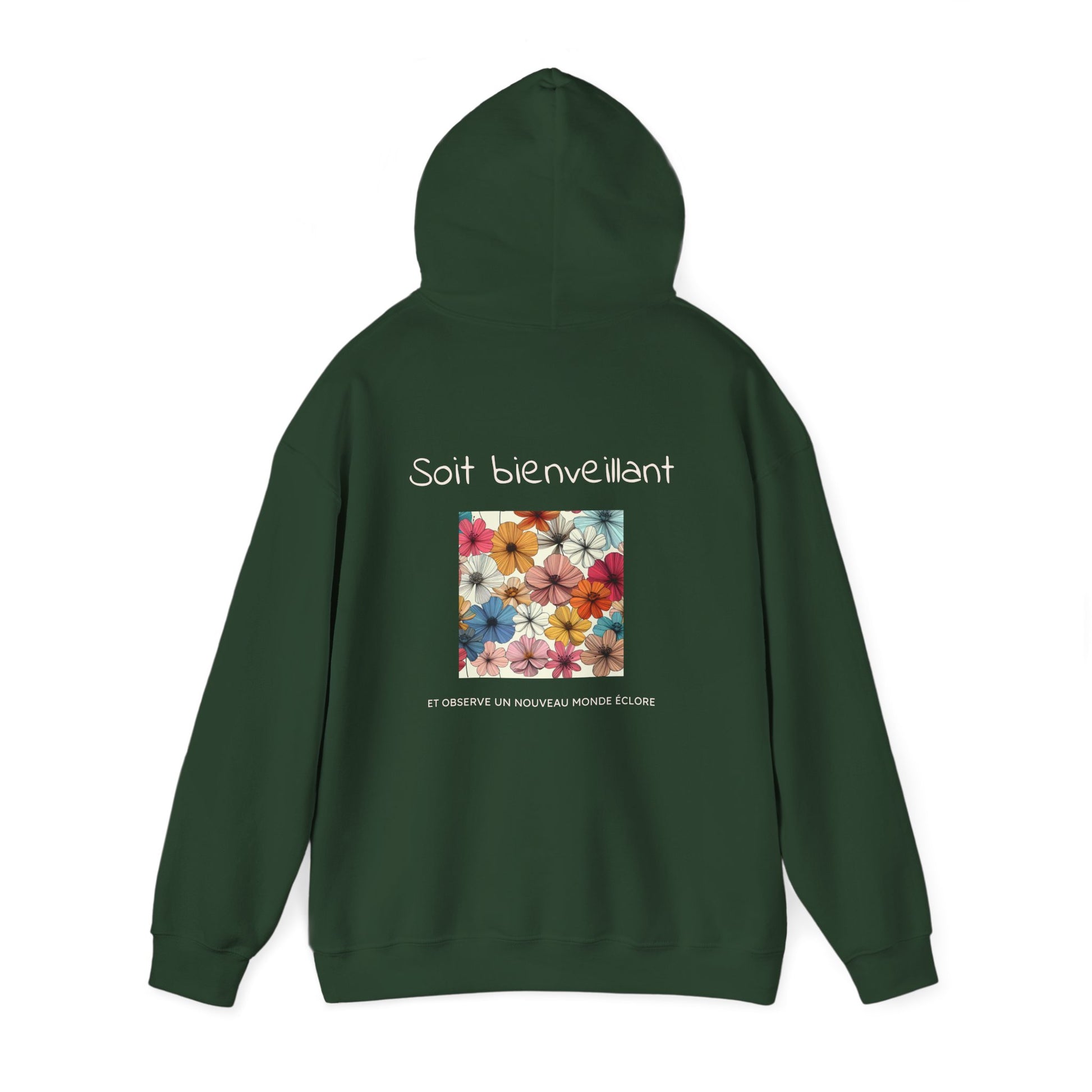 Célébrez le pouvoir de la gentillesse avec ce sweat à capuche « Soit bienveillant et Observe un Nouveau Monde Éclore ». Plus qu'un simple sweat-shirt, c'est un doux rappel que de petits gestes de compassion peuvent créer de beaux changements. Confectionné dans un tissu doux et résistant, ce coton ouaté unisexe est parfait au quotidien, à superposer ou pour diffuser un message positif. Son design minimaliste est confortable, polyvalent et inspirant, encourageant chacun à faire preuve de gentillesse et à contribuer à un monde meilleur.
